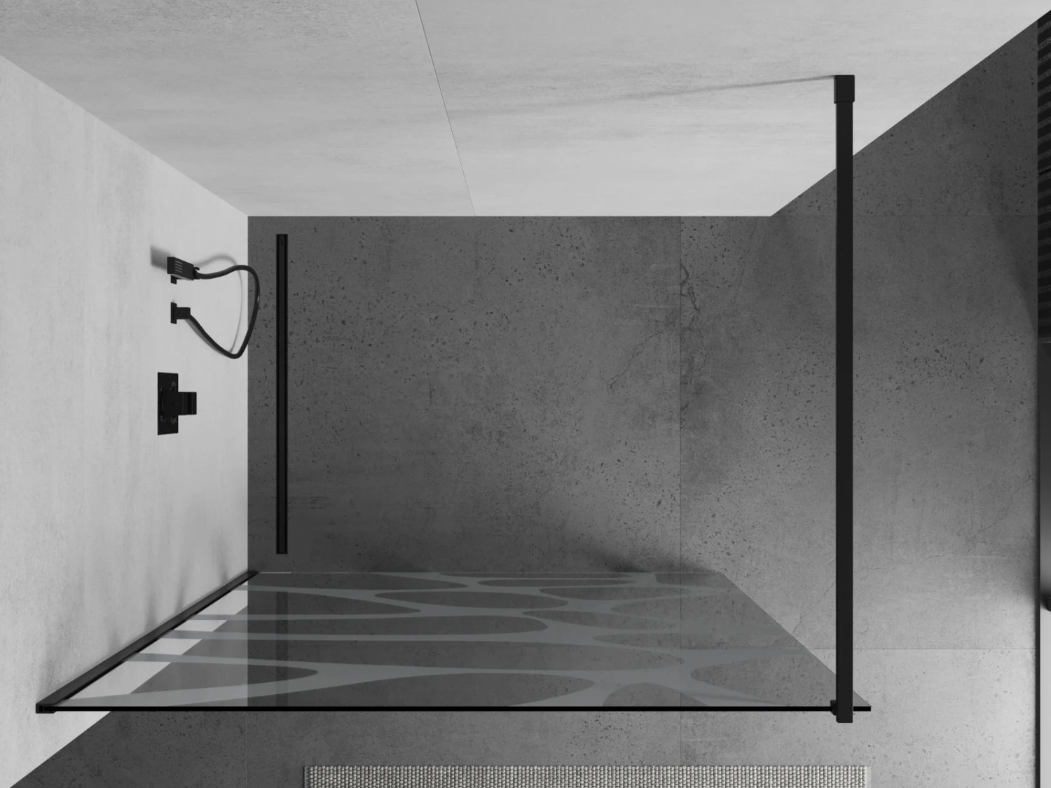 Mexen Kioto ścianka prysznicowa 140 x 200 cm, transparent/biały wzór 8 mm, czarna – 800-140-101-70-97