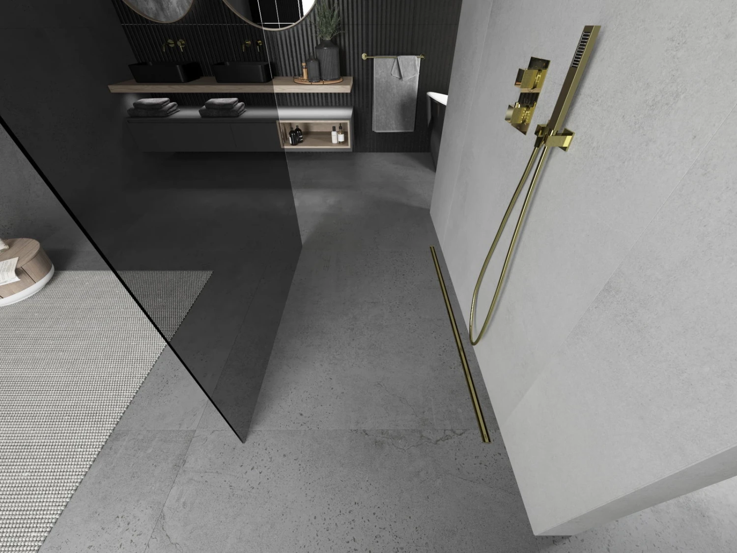 Mexen Kioto ścianka prysznicowa wolnostojąca 100 x 200 cm, grafit, złota – 800-100-002-50-40