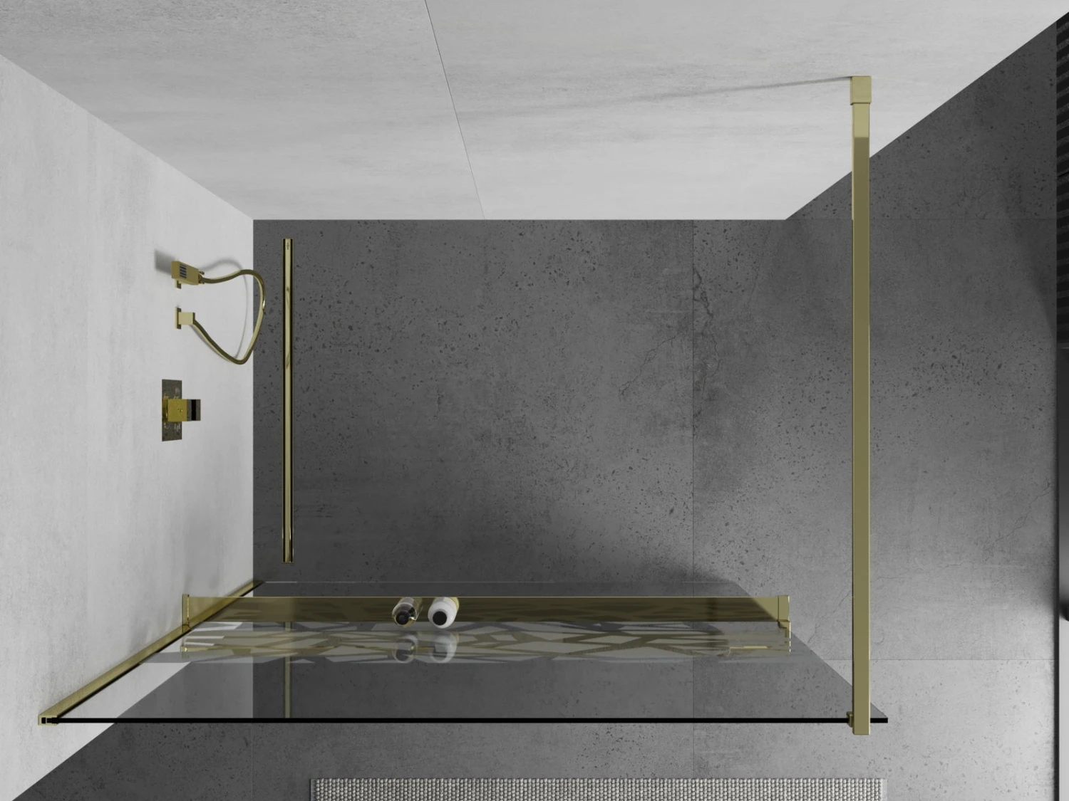 Mexen Kioto+ ścianka prysznicowa z półką i relingiem 120 x 200 cm, transparent/bialy wzór 8 mm, złota – 800-120-121-50-85