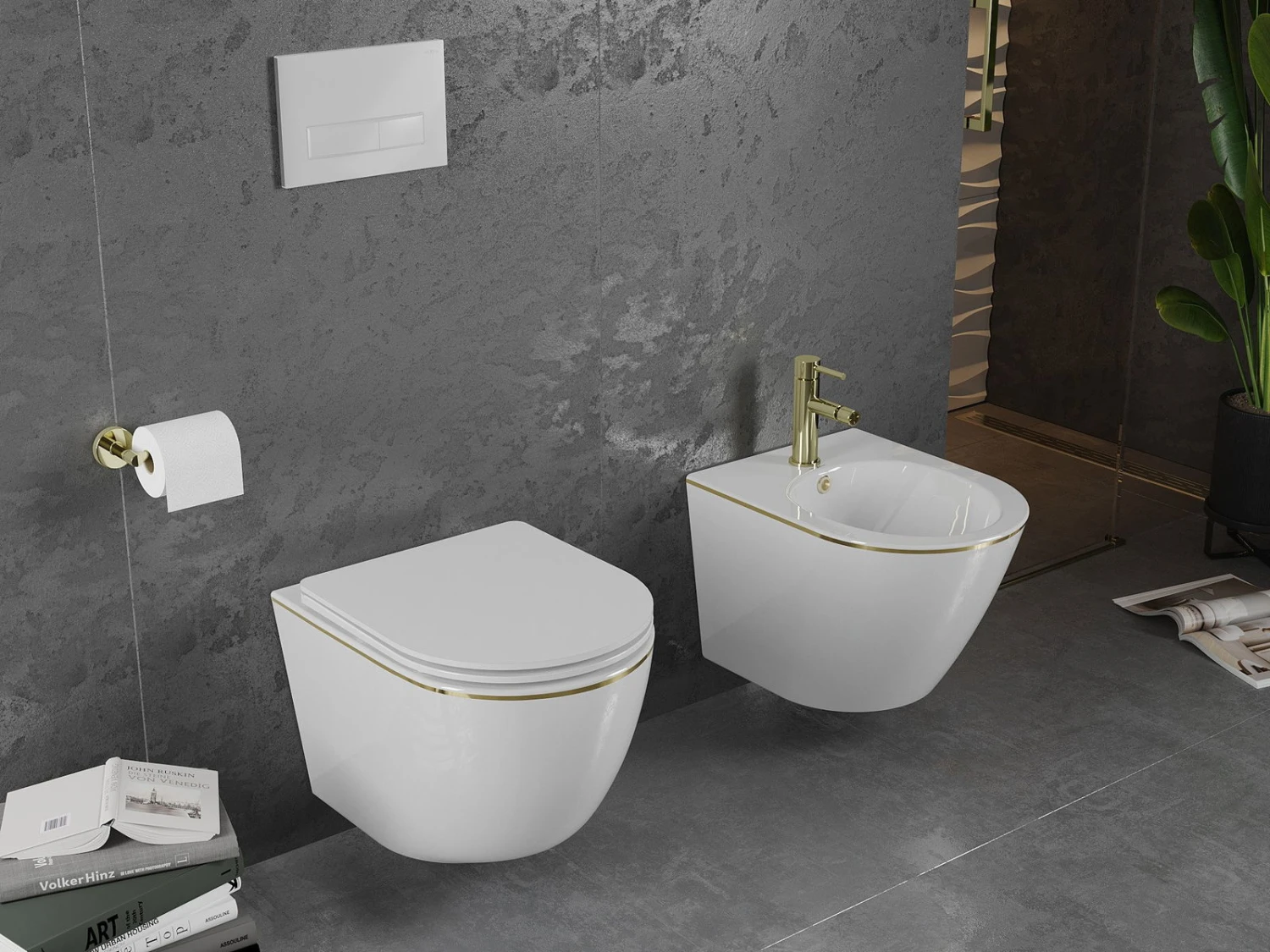 Mexen Lena bidet wiszący, biały/złoty linia – 35224805