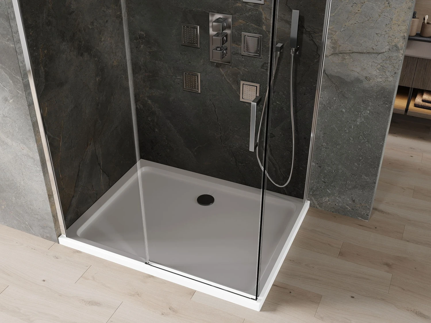 Rozmiar: 100×90 cm (drzwi 100 cm, ścianka 90 cm)